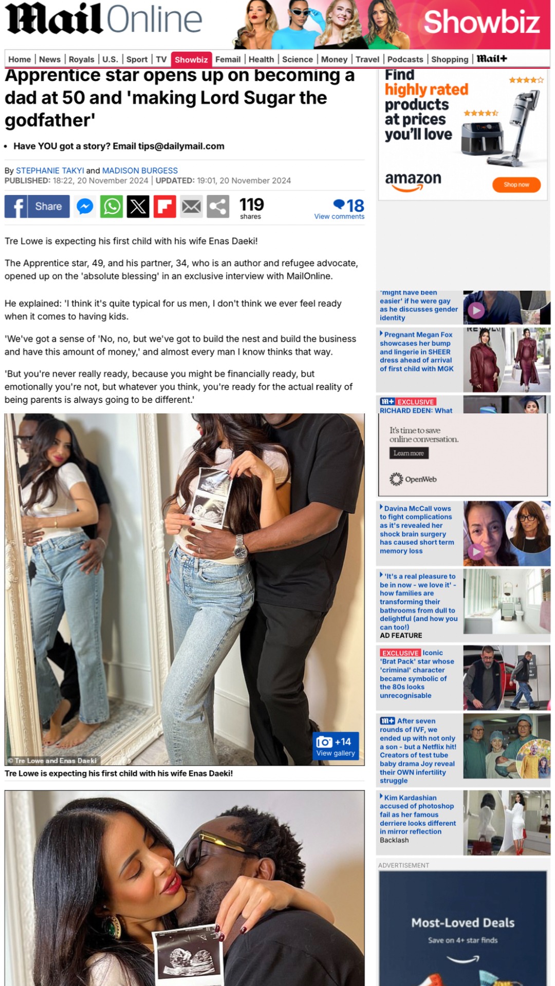 Tre Lowe and Enas Daeki announce their first child